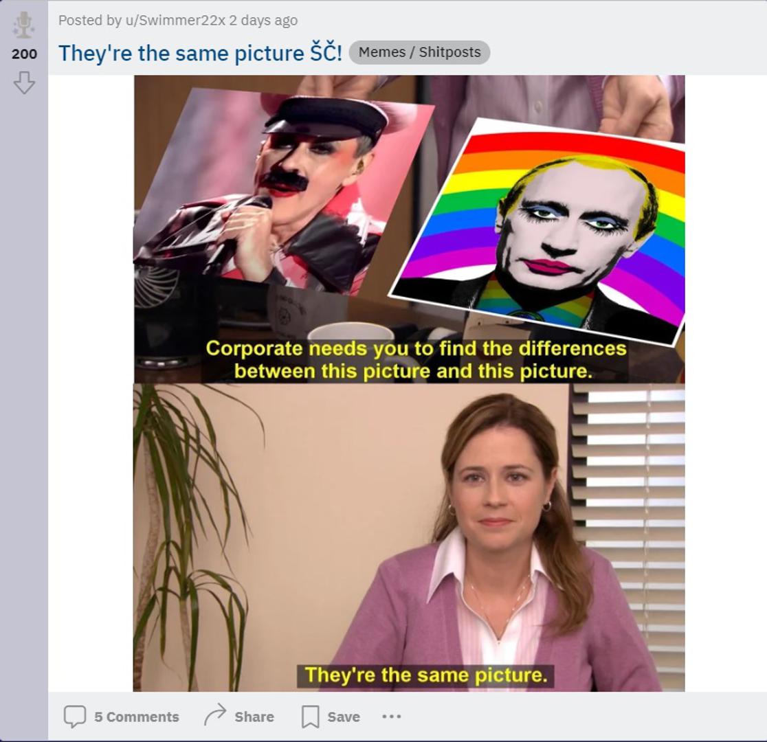 Persona s brkovima nije referenca na Putina, već na Staljina.