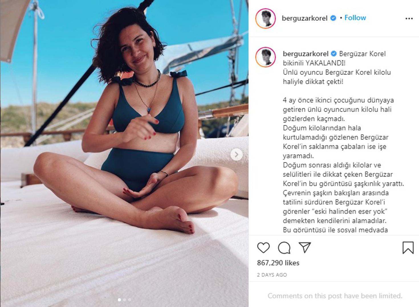 Bergüzar Korel, glumica koju domaća publika najbolje pamti po ulozi u seriji "Šeherezada", prije četiri mjeseca rodila je drugo dijete, a na Instagramu je objavila fotografije s ljetovanja koje su, prenijeli brojni turski mediji te napisali kako je pozornost privukla "prekomjernom težinom". U komentarima se moglo pročitati kako im je smetalo i to što Korel ima previše celulita.