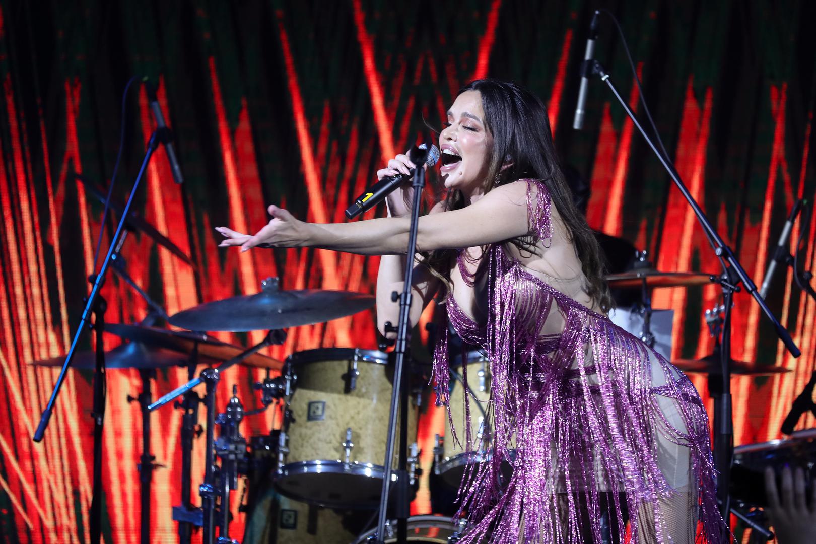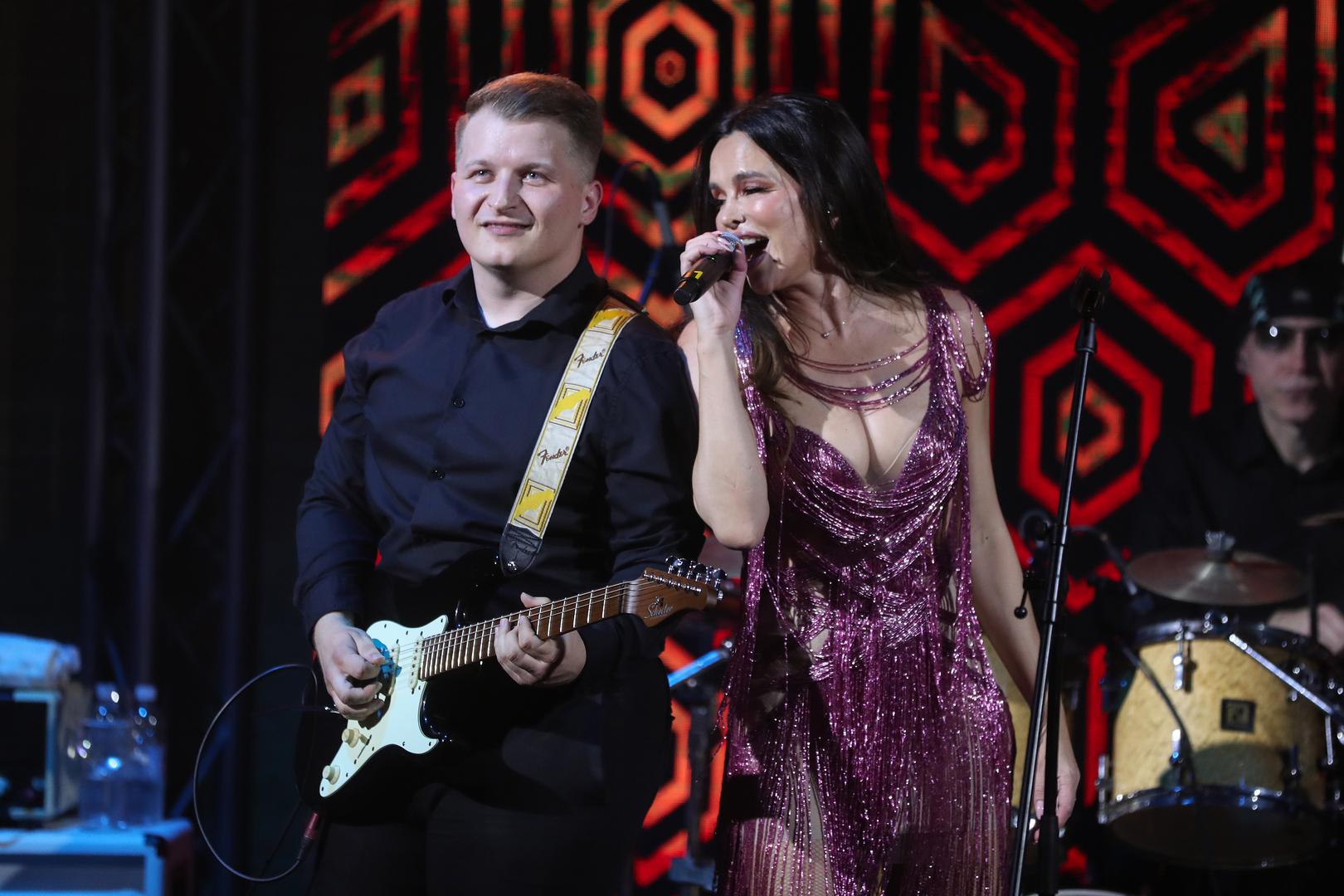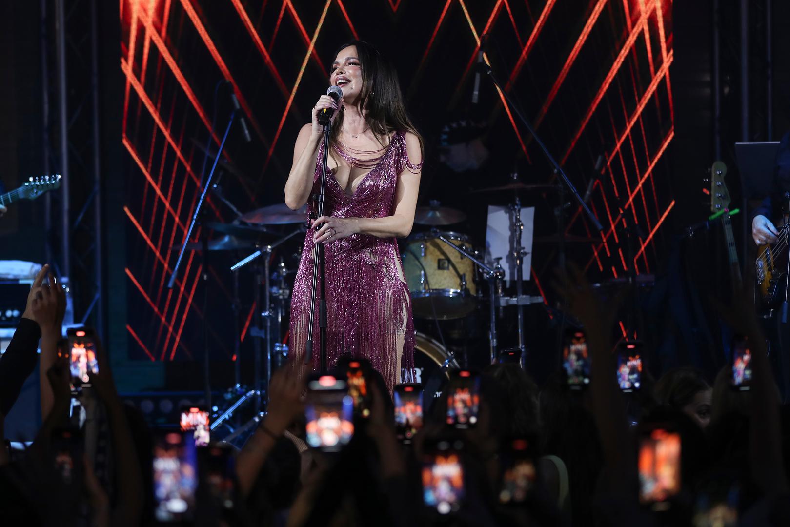 Pjevačica je tijekom cijelog nastupa plesala i komunicirala s publikom, a prvom planu bile su njene vitke noge i duboki dekolte.