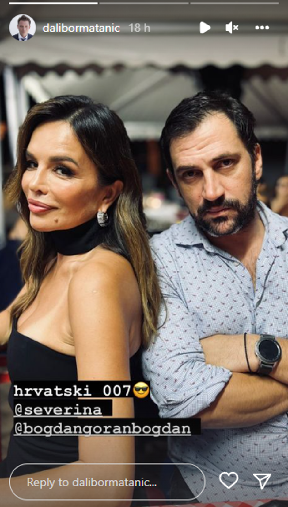 "Hrvatski 007", našalio se Matanić na svom Insta Storyju uz fotografiju na kojoj Severina pozira s Bogdanom.