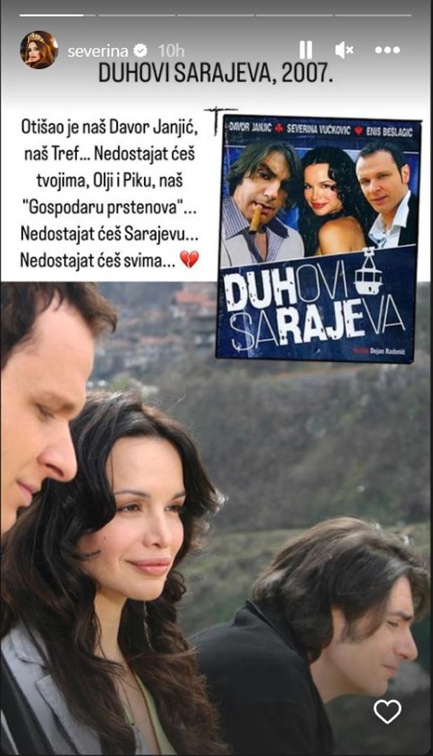 - Otišao je Davor Janjić, naš Tref... Nedostajat ćeš tvojima, Olji i Piku, naš 'Gospodaru prstenova'. Nedostajat ćeš Sarajevu. Nedostajat ćeš svima - napisala je Severina. U istom filmu glumio je i Enis Bešlagić koji se također emotivno oprostio od svog prijatelja i kolege.