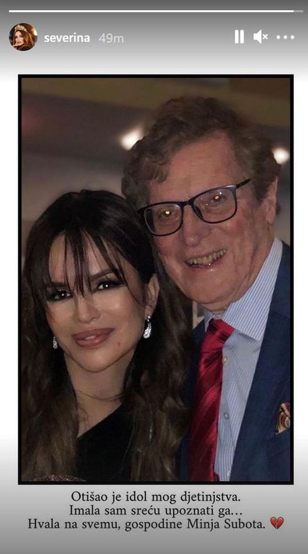 Pjevačica Severina Vučković emotivnom objavom oprostila se od proslavljenog televizijskog voditelja Minje Subote koji je preminuo jučer u 83. godini života.