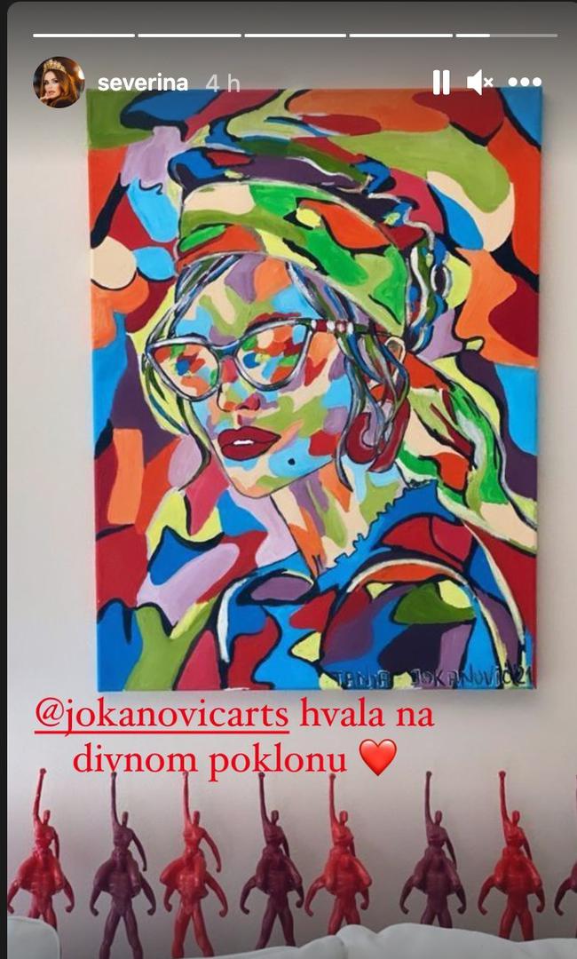 Prije dva dana pjevačica Severina proslavila je 49. rođendana, a pokloni još pristižu na njenu adresu. Pohvalila se novom slikom koju je dobila na poklon od umjetnice Tanja Jokanović koja je Severini poklonila portret i očito se pjevačici jako svidio jer odmah ga je objesila na zid.