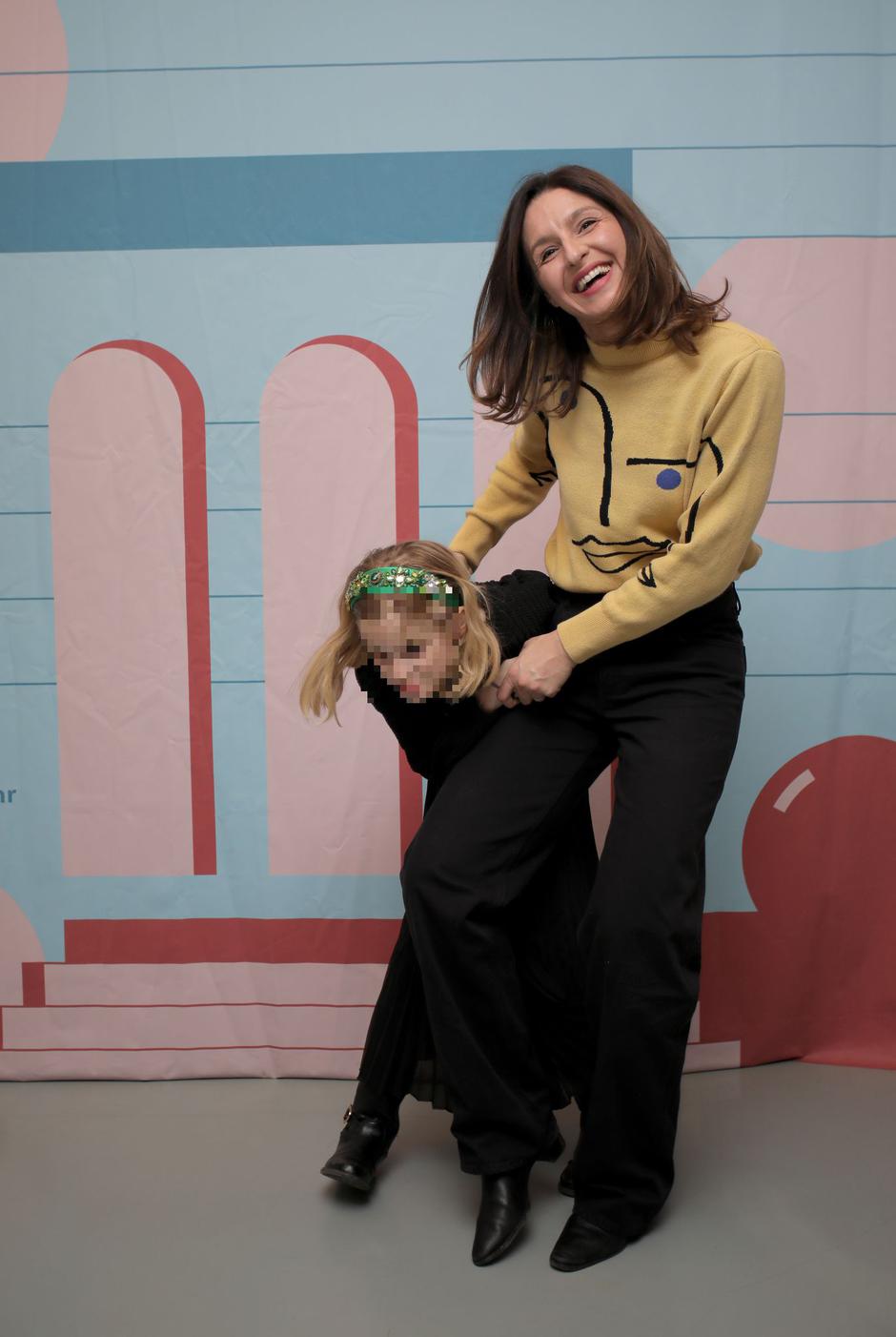 Unatoč dugogodišnjem izbivanju s javne scene, teško je ne primijetiti da se glumica nije gotovo uopće promijenila od početka karijere, a njezin mladoliko lepršavi izgled i osmijeh ne daju ni naslutiti da je nedavno zakoračila u četvrto desetljeće života. Na fotografiji nosi proljetno žutu dolčevitu sa zanimljivim motivima, koja savršeno pristaje uz odlično rasploženje izazvano igrom s zaigranom mezimicom.