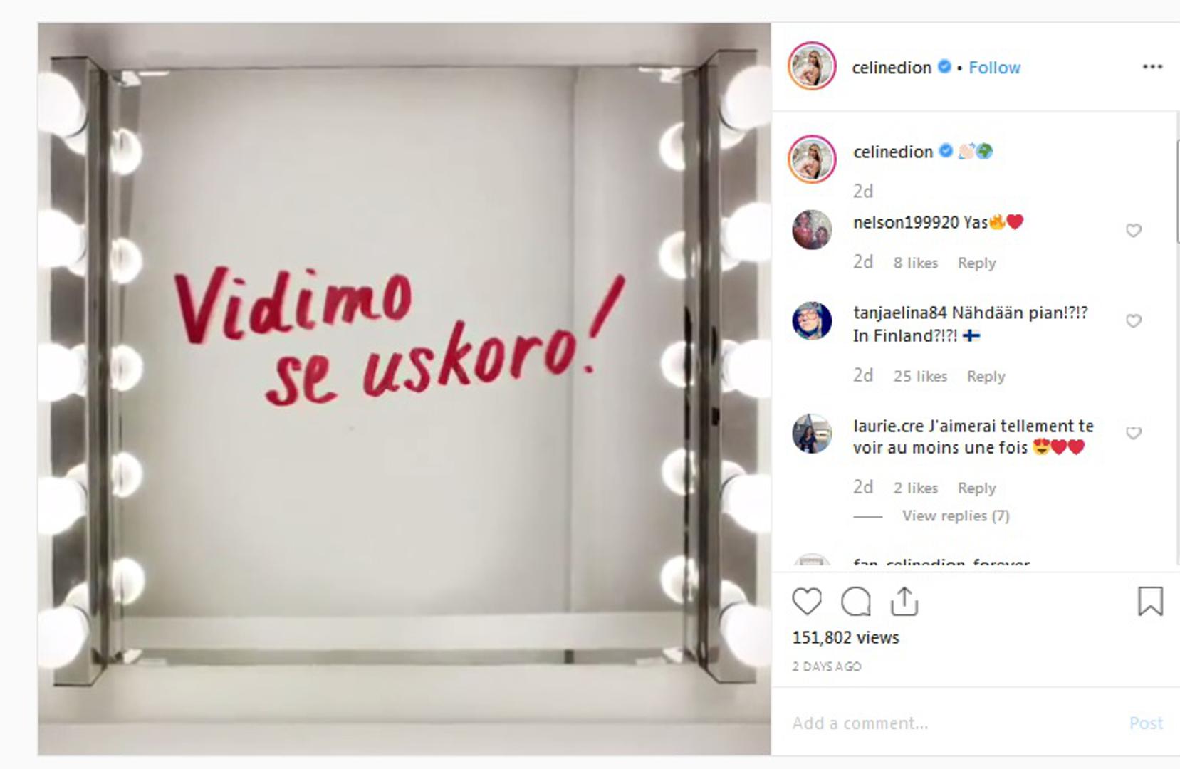 -Vidimo se uskoro - napisala je Celine u video na svom Instagramu kojeg je do sada pogledalo više od 150 tisuća ljudi diljem svijeta. Među njima su i mnogobrojni Hrvati koji trenutno žive u Kanadi i Americi.