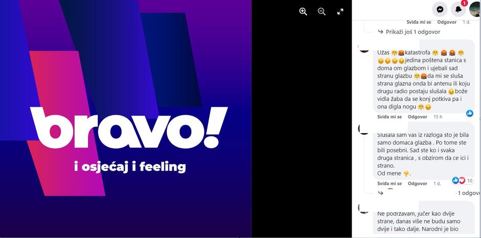 Radio narodni jučer je službeno ugašen i na njegovim frekvencijama sada je bravo. Promijenilo se gotovo sve – od imena, preko sadržaja, produkcije, weba i aplikacije, do vizualnog identiteta. Promjena koja je najteže pala slušateljima ovog radija je činjenica što će pod novim imenom u programu odsada puštati i stranu glazbu, a prepoznatljivost narodnog je bila baš u tome da su puštali isključivo domaće pjesme. Taj novitet nije baš naišao na odobravanje slušatelja i dali su to jasno do znanja u komentarima na službenoj Facebook stranici.