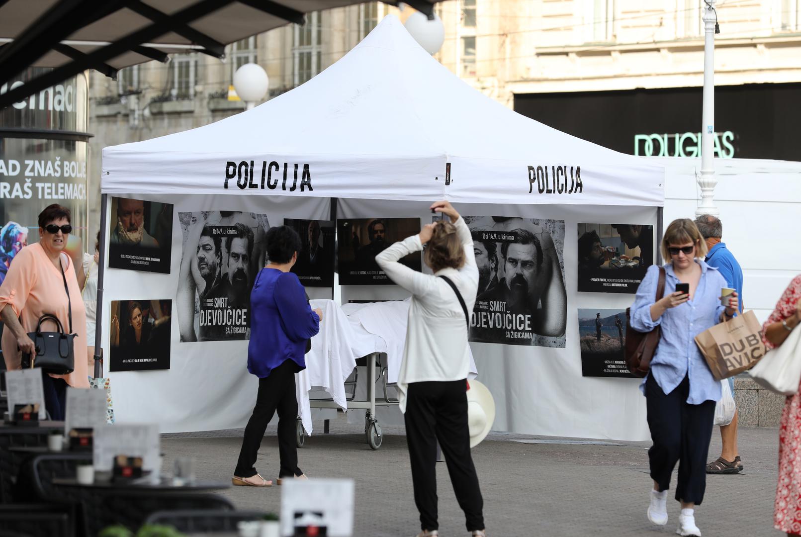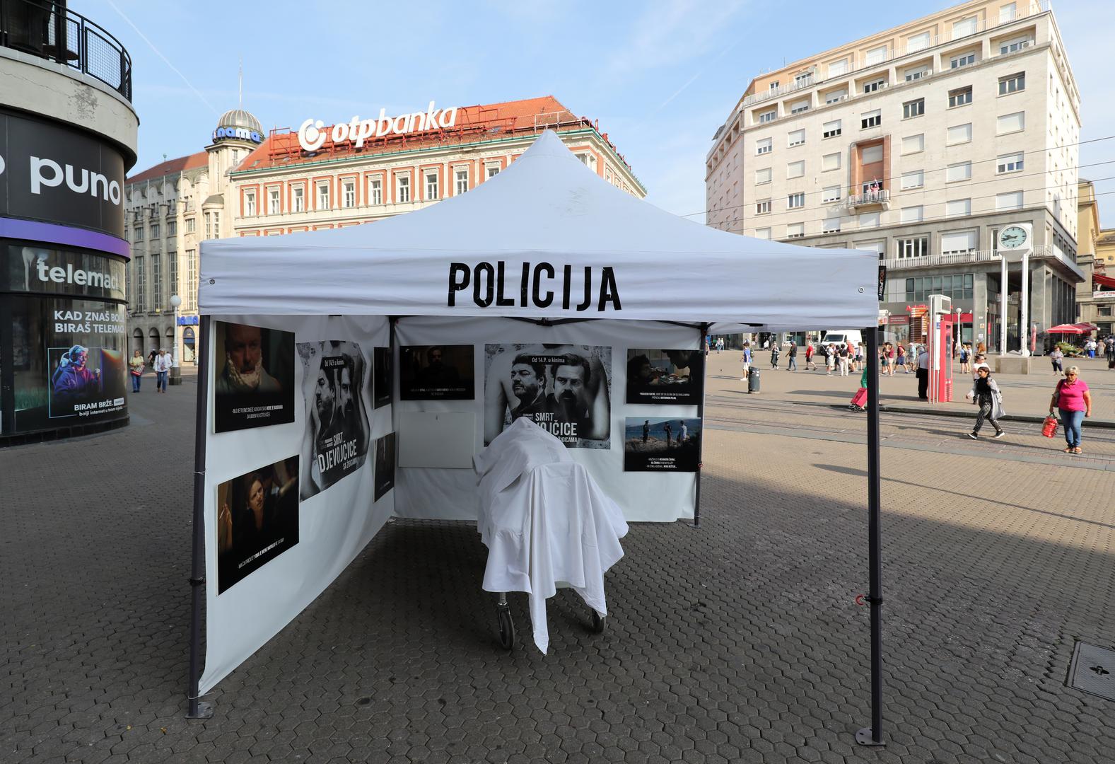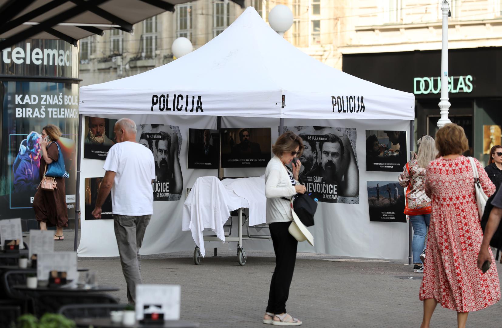 U srijedu ujutro na Trgu bana Josipa Jelačića osvanuo je šator na kojem je crnim slovima bilo ispisano "policija", a unutar šatora bio je smješten bolnički krevet prekriven plahtama ispod kojih se nazire tijelo.