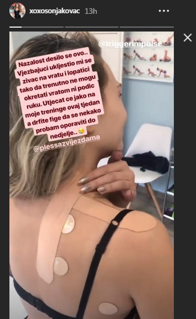 – Nažalost, dogodilo se ovo... Vježbajući ukliještio mi se živac na vratu i lopatici tako da trenutačno ne mogu okretati vratom ni podići ruku. Utjecat će jako na moje treninge ovaj tjedan, a držite fige da se nekako probam oporaviti do nedjelje – napisala je Sonja koja je po pomoć odmah odjurila liječniku.