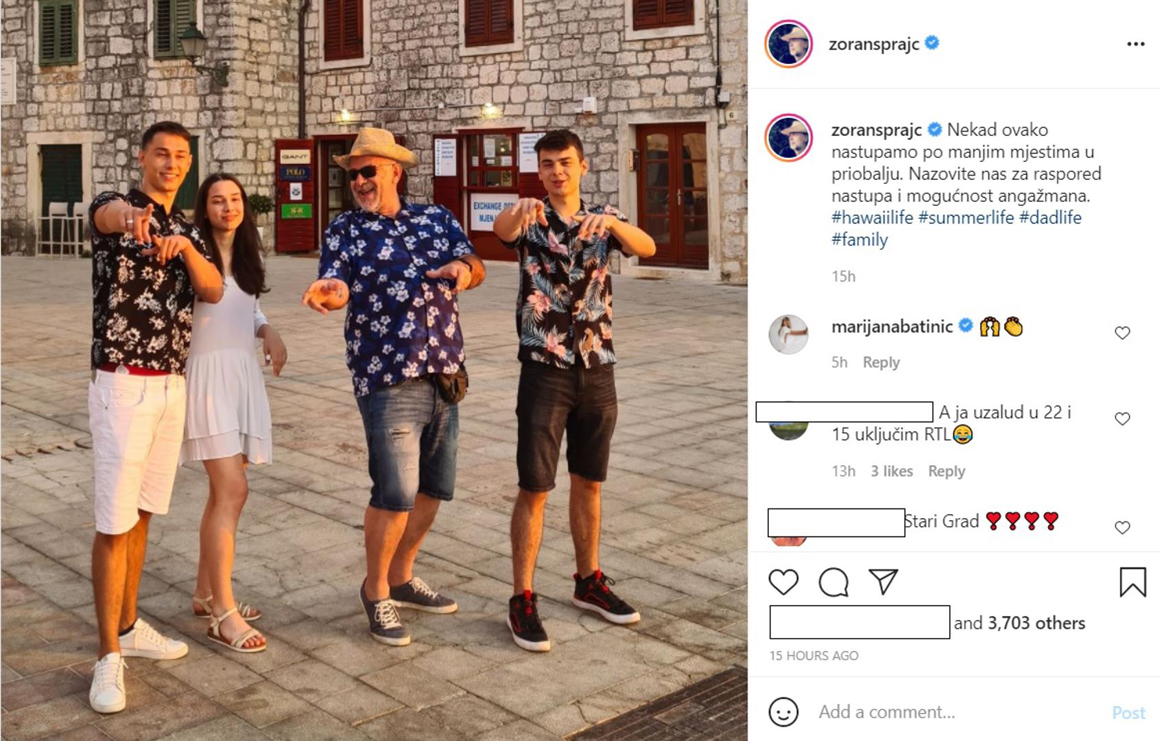 - Nekad ovako nastupamo po manjim mjestima u priobalju. Nazovite nas za raspored nastupa i mogućnost angažmana - napisao je Šprajc u opisu fotografije koja je oduševila njegove pratitelje.