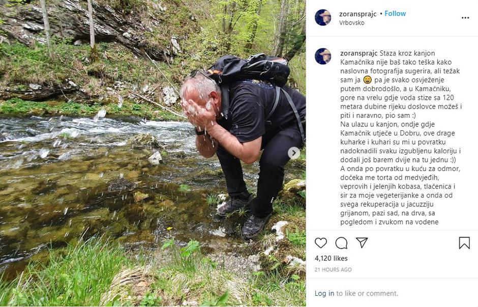 Na ulazu u kanjon, ondje gdje Kamačnik utječe u Dobru, ove drage kuharke i kuhari su mi u povratku nadoknadili svaku izgubljenu kaloriju i dodali još barem dvije na tu jednu :)) A onda po povratku u kuću za odmor, dočeka me torta od medvjeđih, veprovih i jelenjih kobasa, tlačenica i sir za moje vegetarijanke, a onda od svega rekuperacija u jacuzziju grijanom, pazi sad, na drva, s pogledom i zvukom na vodene kaskade rijeke Kupe. Njezin izvor je par kilometara više i čak je dublji od Kamačnika, kažu više od 170 metara ali nisam stigao provjeriti, drugi put ću i ondje zaroniti jer vraćam se u Vrbovsko čim sprašim 20 kg njami njami čuvenog goranskog krumpira. Moja je preporuka da ne morate kao ja čekati 1. maj da se provozate i prošetate brdsko-šumskim biserom zvanom Gorski kotar :)" napisao je voditelj, a pratitelji su bili oduševljeni ovom objavom za koju je dobio više od 4 tisuće lajkova.