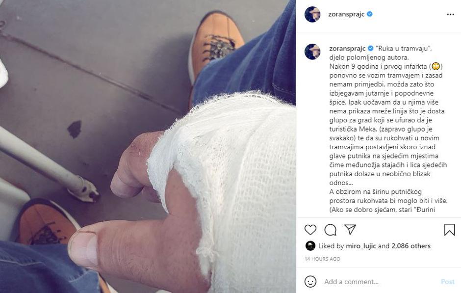 Voditelj Zoran Šprajc (53) netom prije izbora slomio je ruku, o čemu je obavijestio svoje pratitelje. Zbog te je nesreće propustio izbornu noć, a sada se ekipi s Instagrama ponovno javio i otkrio da se nakon devet godina provozao s tramvajem.