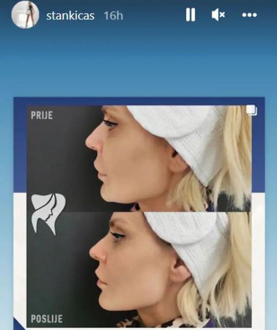 - Kod naše Stankice, uz srednji masiv radili smo i donju trećinu lica, 'jawline' i bradu kako bismo liniju donje vilice učinili ravnom, te donju trećinu lica istaknutijom i ženstvenijom - stoji u objavi tima doktora koje je Stankica posjetila.