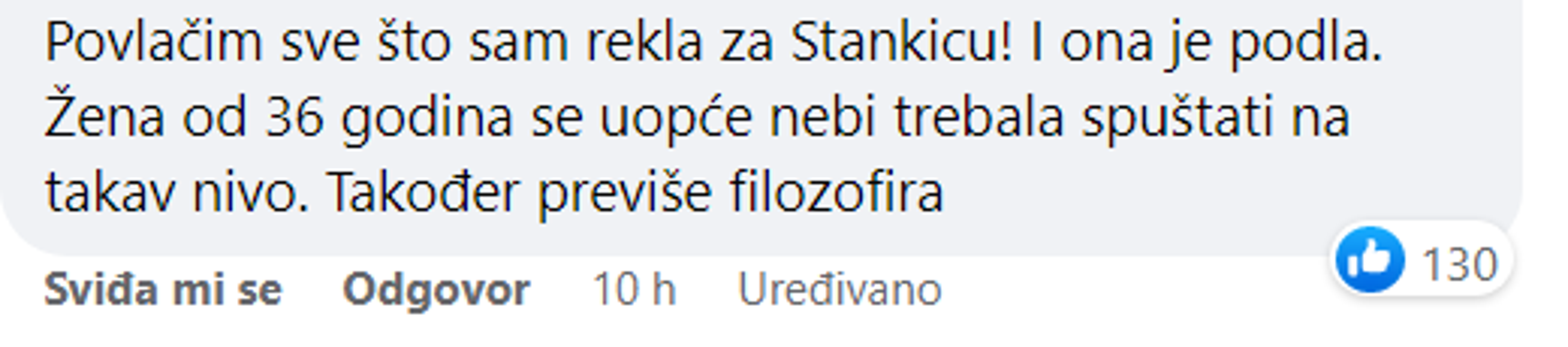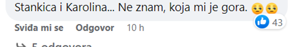 - Povlačim sve što sam rekla za Stankicu! I ona je podla. Žena od 36 godina se uopće ne bi trebala spuštati na takav nivo. Također previše filozofira – napisala je jedna osoba, a druga je dodala da su Stankica i Karolina jednake.