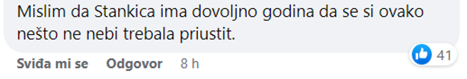– Mislim da Stankica ima dovoljno godina da si ovako nešto ne bi trebala priuštiti – pisali su gledatelji. Neki gledatelji su branili i Stankicu.