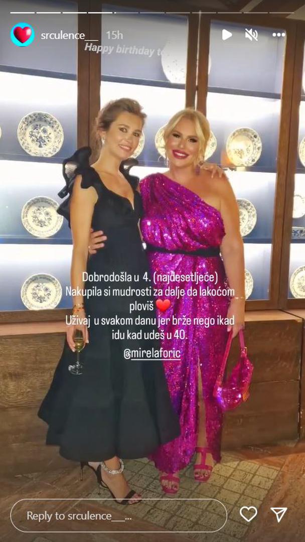 "Dobrodošla u 4. (najdesetljeće). Nakupila si mudrosti za dalje da lakoćom ploviš. Uživaj u svakom danu jer brže nego ikad idu kad uđeš u 40.", napisala je Todorić uz sliku s Mirelom.