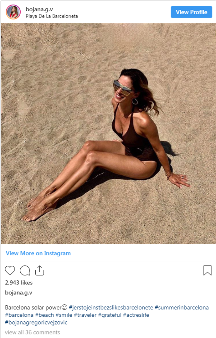 Pozirala je u jednodijelnom badiću koji je istaknuo njezine duge noge. Bojana liniju održava vježbanjem, a jednom je spomenula da joj to najviše pomaže u borbi s migrenom. Uz fotku je napisala "solar power" i dodala emotikon koji namiguje, a komplimenata, lajkova i pozitivnih komentara nije nedostajalo.
