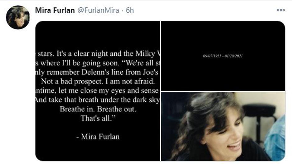 Vijest o smrti Mire Furlan u petak rano ujutro šokirala je hrvatski, ali i svjetski glumački svijet. Vijest o njezinoj smrti objavljena je i na njezinom Twitter profilu.