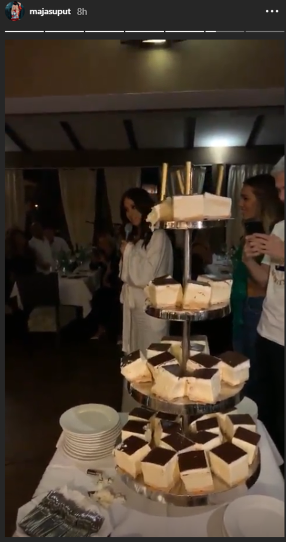 Uzvanici su se počastili mnogobrojnim kremšnitama koje su se pojavile na tri kata, a slavljenice su pozirale uz zlatne balone koji su ispisivali brojku 35. U jednom trenutku, Instagram story zabilježio je Tijin govor. Otkrila je zašto se toliki broj kremšnita pojavio na proslavi.