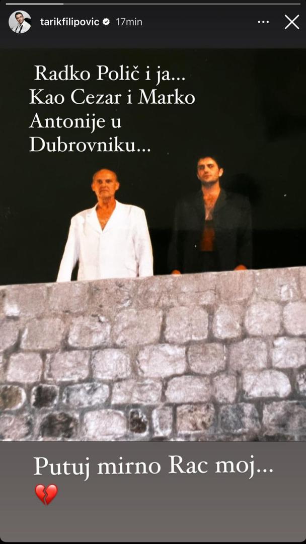 -Radko Polič i ja... Kao Cezar i Marko Antonije u Dubrovniku. Putuj mirno Rac moj...-napisao je Tarik uz zajedničku fotografiju.
