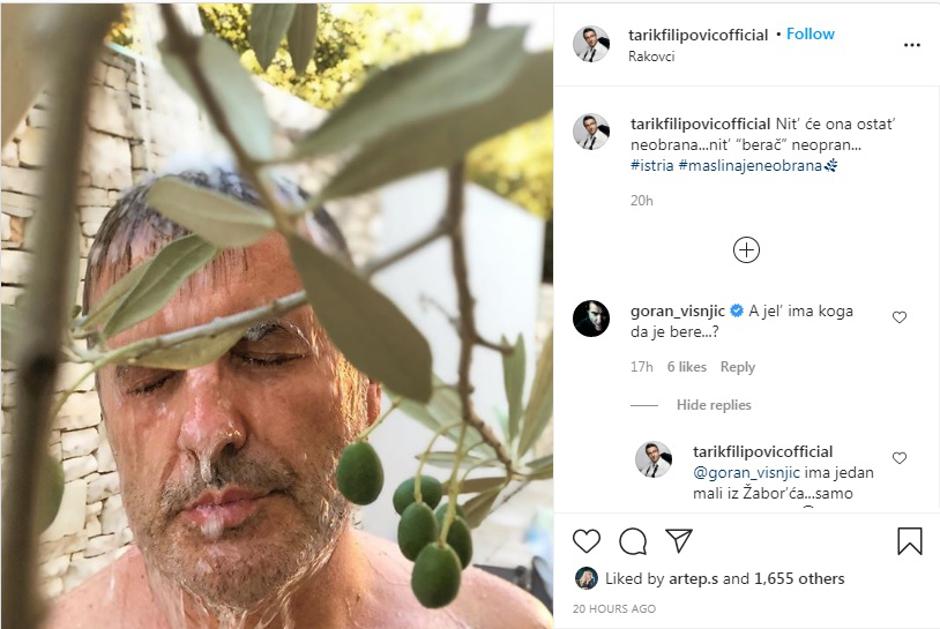 Tarik Filipović s obitelji se u Rakovcima pored Poreča gdje je prije 12 godina kupio kuću, a na Instagramu je objavio fotografiju ispod tuša.