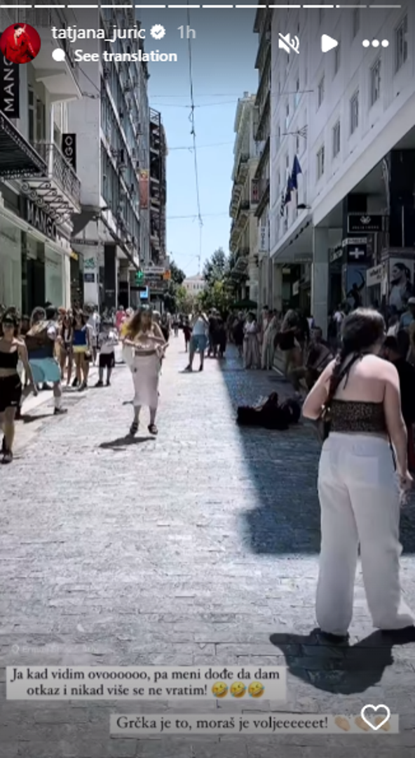 Tatjana je prvo na Instagramu podijelila video iz zračne luke, a potom i iz destinacije u koju se uputila. Jurić uživa na odmoru u Grčkoj, a s pratiteljima je podijelila nekoliko anegdota.