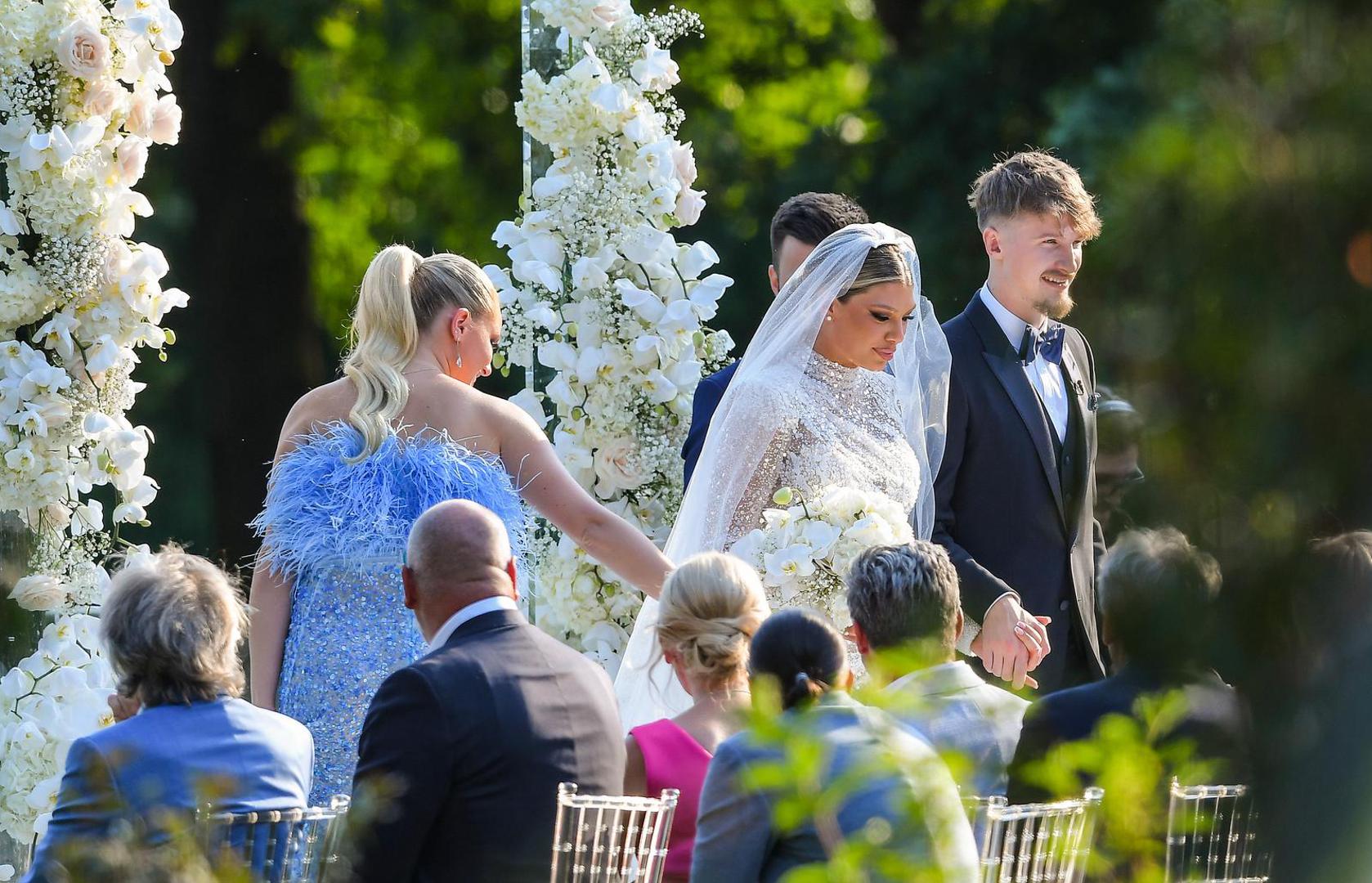Na vjenčanju su bila brojna poznata imena hrvatske scene među kojima supruga košarkaša Ivice Zupca Kristina Zubac, supruga nogometaša Matea Kovačića Izabel Kovačić, influencerica Brita Bobetić, glazbenik Stefan Cvijović Cvija, dizajnerica Kristina Bruja, frizer poznatih Zvonimir Franić koji je također podijelio djelić atmosfera, ali i mladenkin izgled prije svečanosti.