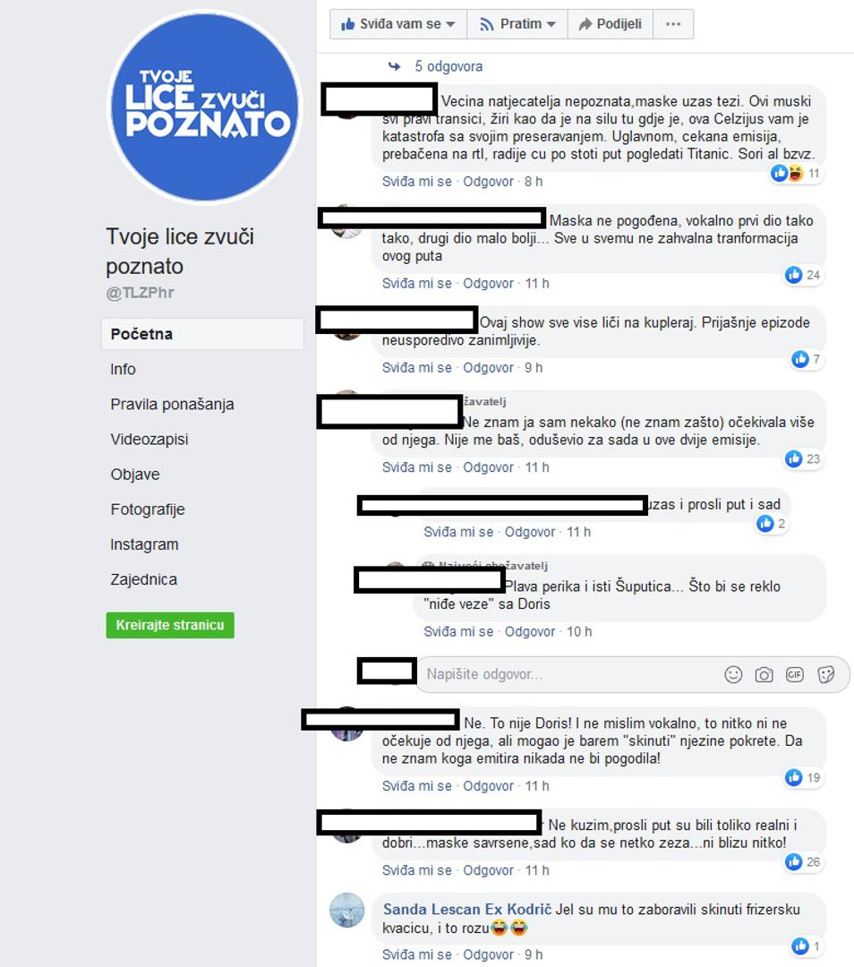 "Većina natjecatelja nepoznata, maske užas teži. Ovi muški svi pravi transići, žiri kao da je na silu tu gdje je, ova Celzijus vam je katastrofa sa svojim preseravanjem. Toliko čekana emisija, ali radije ću po stoti puta pogledati Titanik. Sorry, ali bez veze", poručio je nezadovoljni gledatelj kojeg se nije dojmila transformacija Marija Valentića u Doris Dragović. I nije bio jedini...