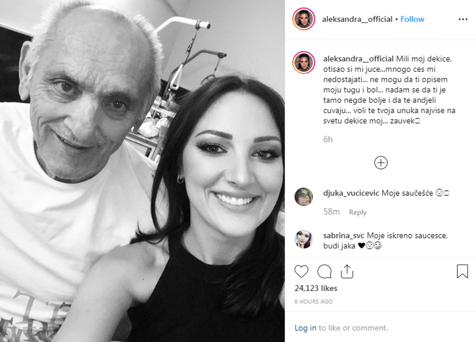 Supruga posinka Lepe Brene, folk pjevačica Alekasandra Živojinović na Instagramu je podijelila tužnu vijest, te otkrila kako joj je preminuo djed s kojim je bila jako bliska.