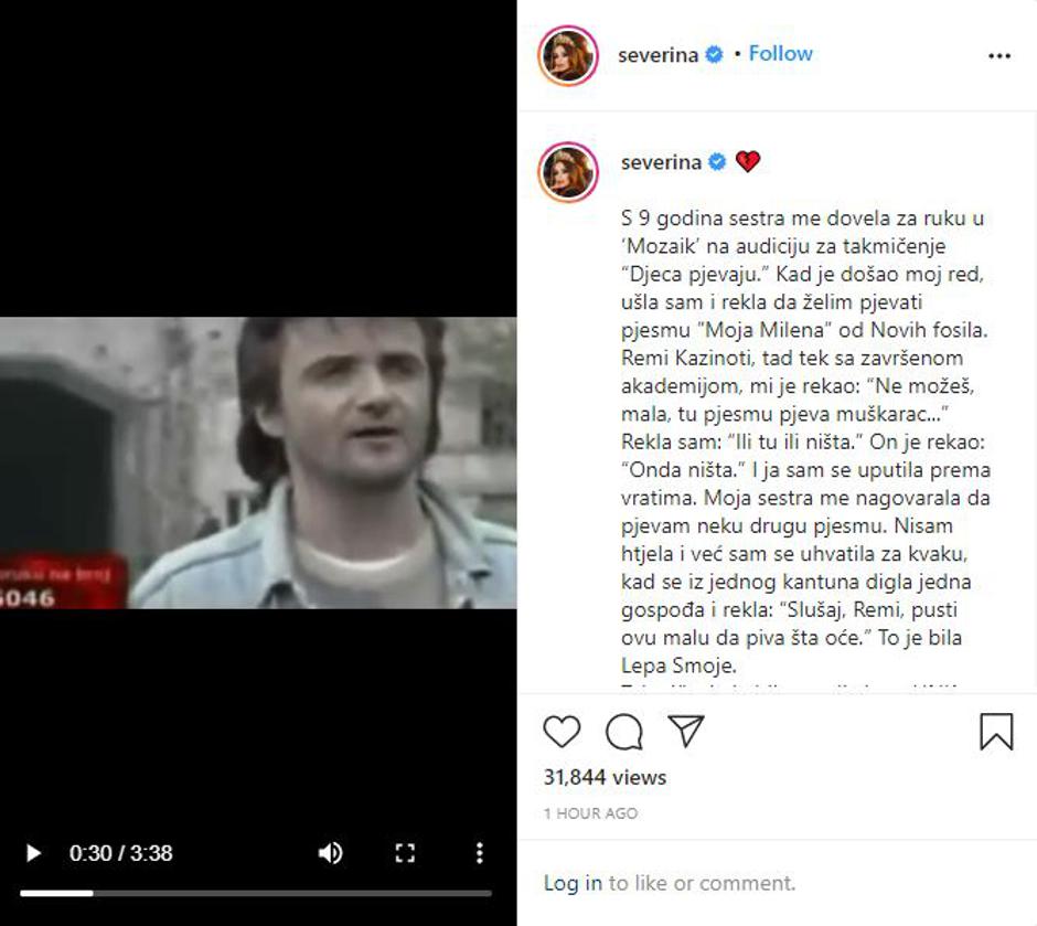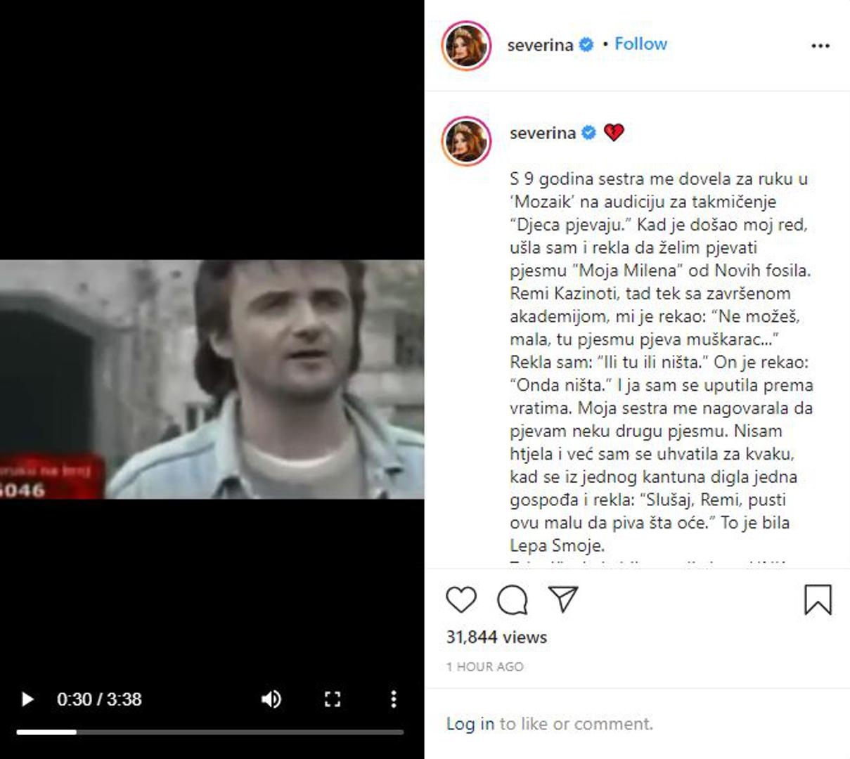 ” On je rekao: “Onda ništa.” I ja sam se uputila prema vratima. Moja sestra me nagovarala da pjevam neku drugu pjesmu. Nisam htjela i već sam se uhvatila za kvaku, kad se iz jednog kantuna digla jedna gospođa i rekla: “Slušaj, Remi, pusti ovu malu da piva šta oće.” To je bila Lepa Smoje" započela je Severina i nastavila:
