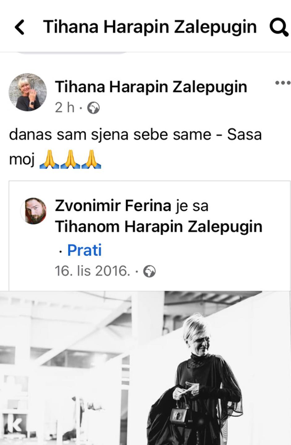 Tihana Harapin Zalepugin (71) , supruga legendarnog voditelja Saše Zalepugina (91) koji je jutros doživio moždani udar u njihovom zagrebačkom domu, oglasila se i na Facebooku, molitvom za svog Sašu: