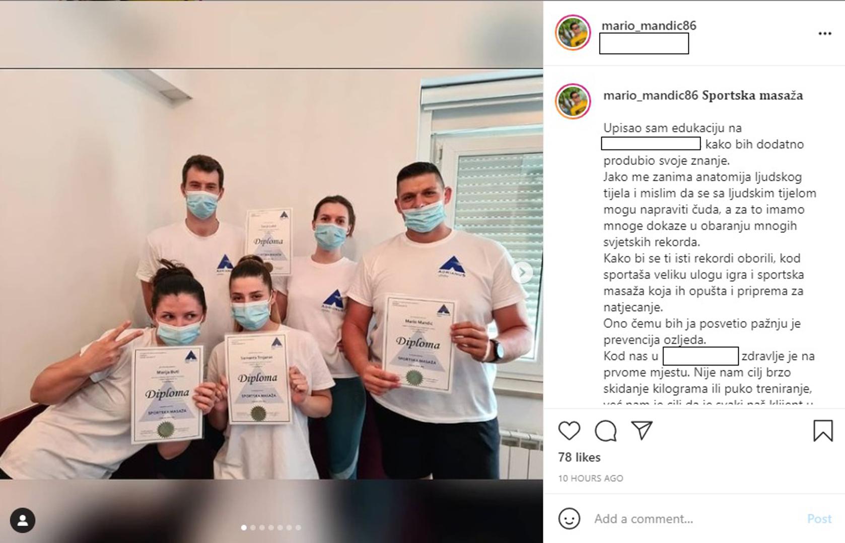 Mario Mandić (28), kandidat četvrte sezone showa ''Život na vagi'', pohvalio se novim uspjehom. Nakon što je postao fitness-trener i otvorio vlastitu teretanu, Mario je upisao i tečaj sportske masaže koji je ovih dana uspješno završio. Novom diplomom pohvalio se na svom Instagramu.