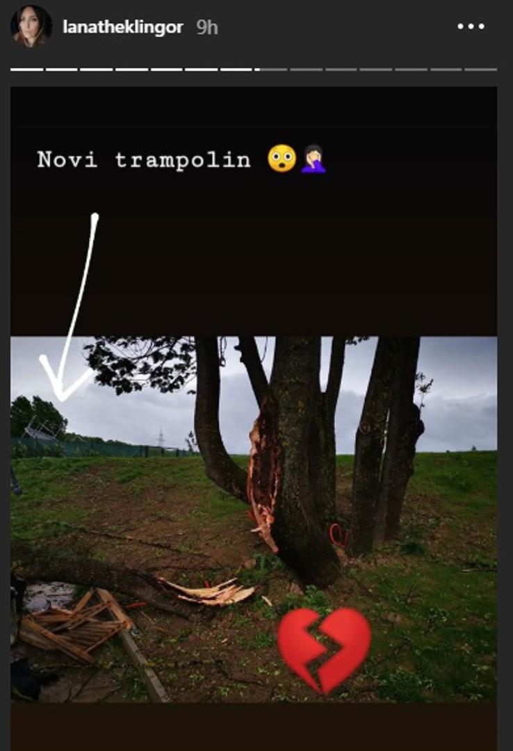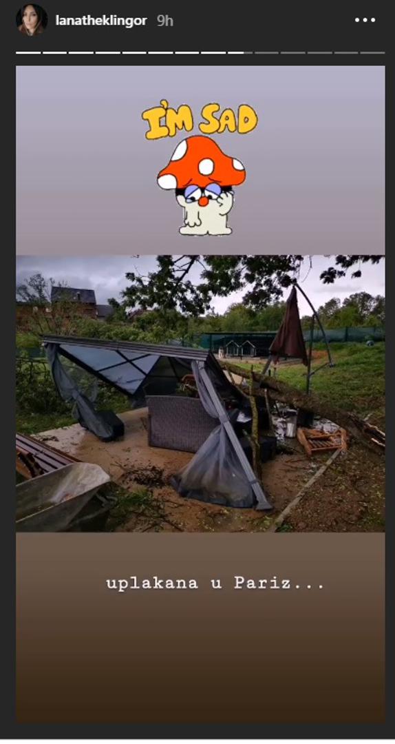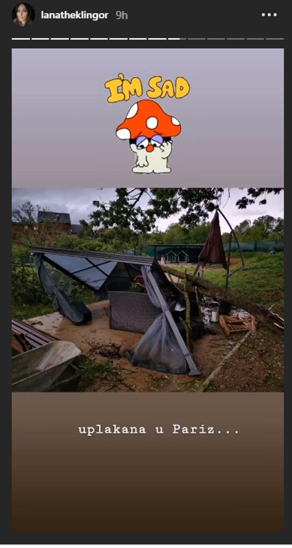 - Uplakana u Pariz - napisala je Lana na Instagram storyju uz fotografiju trampolina i stabla kojeg je vjetar iščupao.