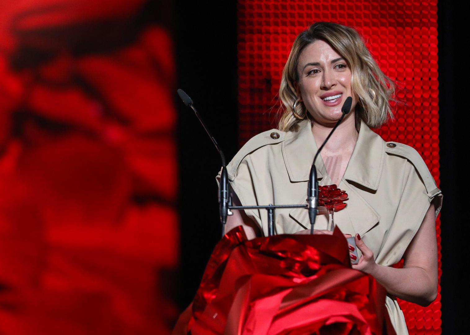 18.03.2022., Zagreb - U Hrvatskom narodnom kazalistu odrazana je dodjela Vecernjakove ruze, najvaznije i najstarije medijske nagrade, a uz vec poznate kategorije, ove godine dodijeljena je i osma, digitalna ruza. Indira Levak, Niksa Bratos. Photo: Emica Elvedji/PIXSELL