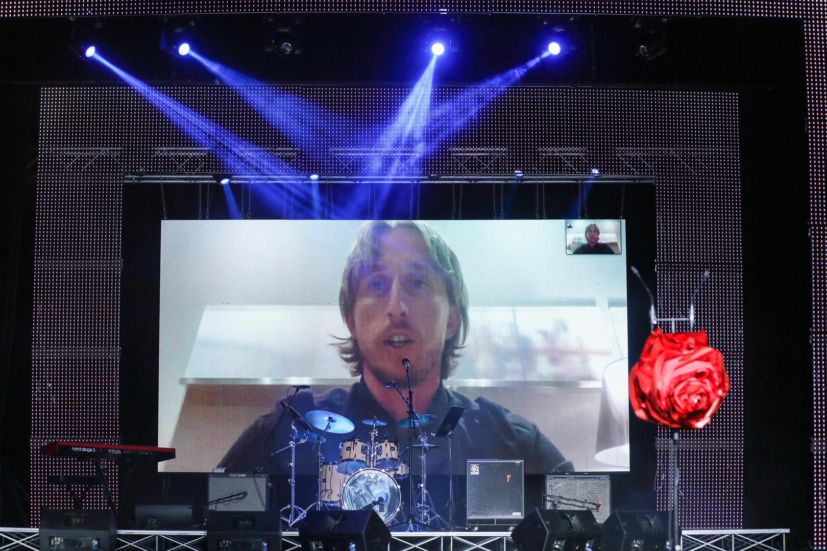 18.03.2022., Zagreb - U Hrvatskom narodnom kazalistu odrazana je dodjela Vecernjakove ruze, najvaznije i najstarije medijske nagrade, a uz vec poznate kategorije, ove godine dodijeljena je i osma, digitalna ruza. Luka Modric ukuljucio se u dodjelu nagrada video vezom. Photo: Emica Elvedji/PIXSELL