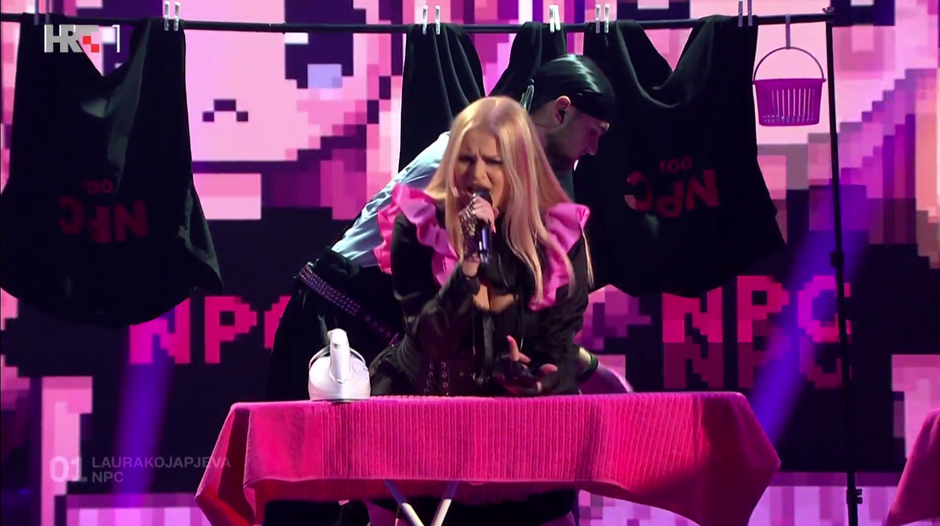 20:25 Laura Sučec, poznatija pod umjetničkim imenom laurakojapjeva, novo je ime na hrvatskoj glazbenoj sceni, ali njezin umjetnički izraz već je prepoznatljiv. Kao kantautorica, sklona je eksperimentiranju s modernim pop i elektroničkim zvukovima, a njezini tekstovi često propituju suvremena društvena pitanja i ljudske emocije. Pjesma "NPC" donosi zanimljivu konceptualnu priču inspiriranu svijetom videoigara – metaforički se bavi otuđenjem pojedinca u društvu i pitanjem koliko smo doista autonomni u svojim odlukama. Vizualno i glazbeno, njezin nastup obećava nešto drukčije i originalno, što će zasigurno privući pažnju publike.