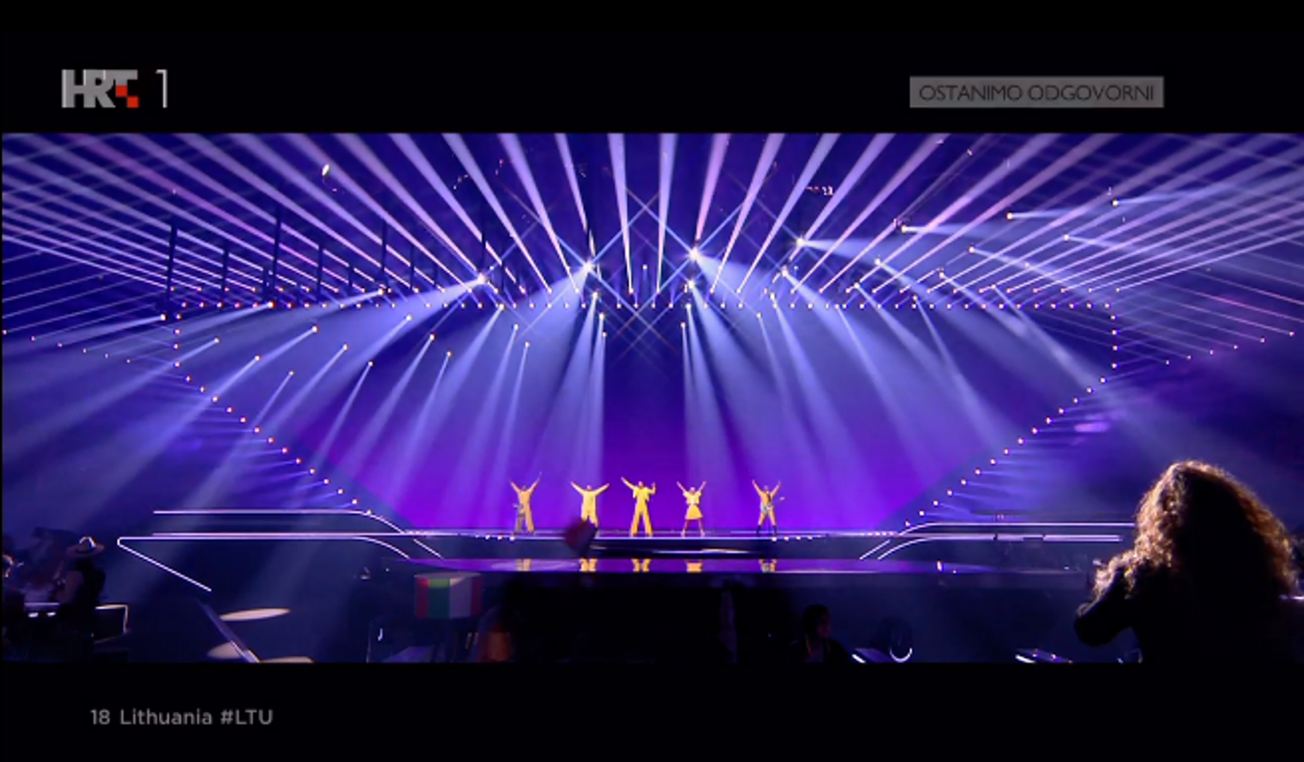 22:25 Osamnaesta po redu stiže Litva s pjesmom "Discoteque". Litavski tročlani bend The Roop sastoji se od glavnog vokala Vaidotasa Valiukevičiusa, bubnjara Robertasa Baranauskasa i gitariste Mantasa Banišauskasa. Bend je osnovan 2014. godine, a za naziv grupe uzeli su englesku arhaičnu riječ “the roop” u značenju “vikati” ili “praviti veliku buku”. Prvi nastup na litavskom izboru imali su 2018. godine, kada su s pjesmom "Yes, I Do" zauzeli treće mjesto. Lani su pobijedili s pjesmom "On Fire", a na kladionicama su bili jedni od glavih favorita za pobjedu. Ove godine Litva je ponovno održala nacionalni izbor, a The Roop su imali sigurno mjesto u finalu. Ponovno su bili po ukusu žirija i publike, i pobijedili s pjesmom "Discoteque".
