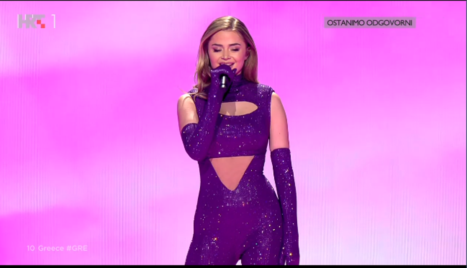 21:49 Deseta po redu stiže nam Grčka i njezina predstavnica Stefania s pjesmom Last Dance. Posljednji su put pobijedili 2005. godine s pjesmom My Number One, koju je otpjevala Helena Paparizou.