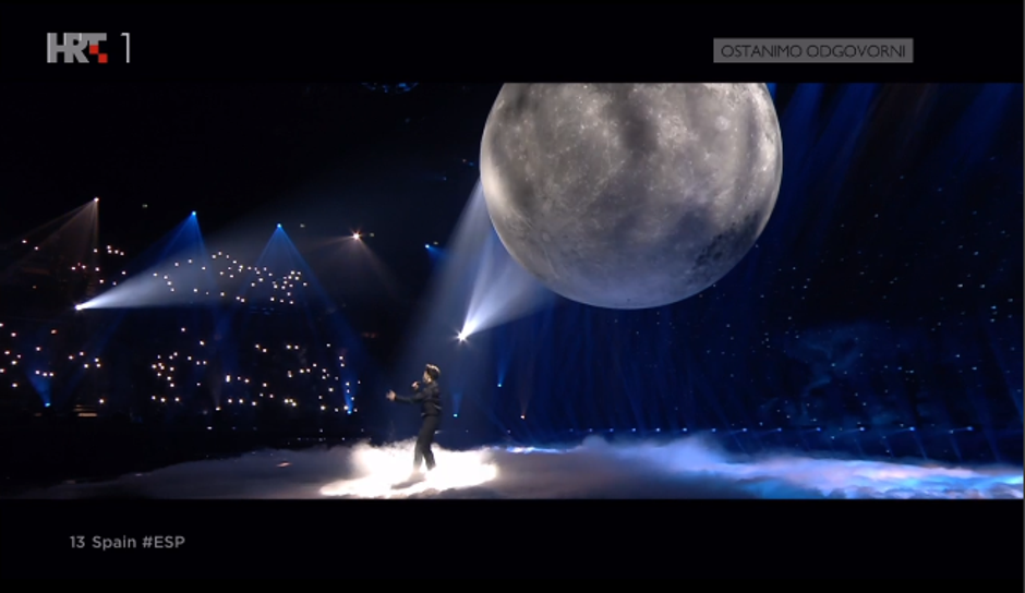 22:02 Još jedna država iz skupine Velikih 5 preuzima pozornicu Eurosonga. Riječ je o Španjolskoj koju predstavlja 29-godišnji Blas Cantó pjesmom "Voy a quedarme". Istaknuo se kao član španjolskog benda Auryn. 2017. započeo je solo karijeru. Njegov debitantski studijski album Complicado objavljen je u rujnu 2018. godine te je zauzeo prvo mjesto španjolske ljestvice albuma.