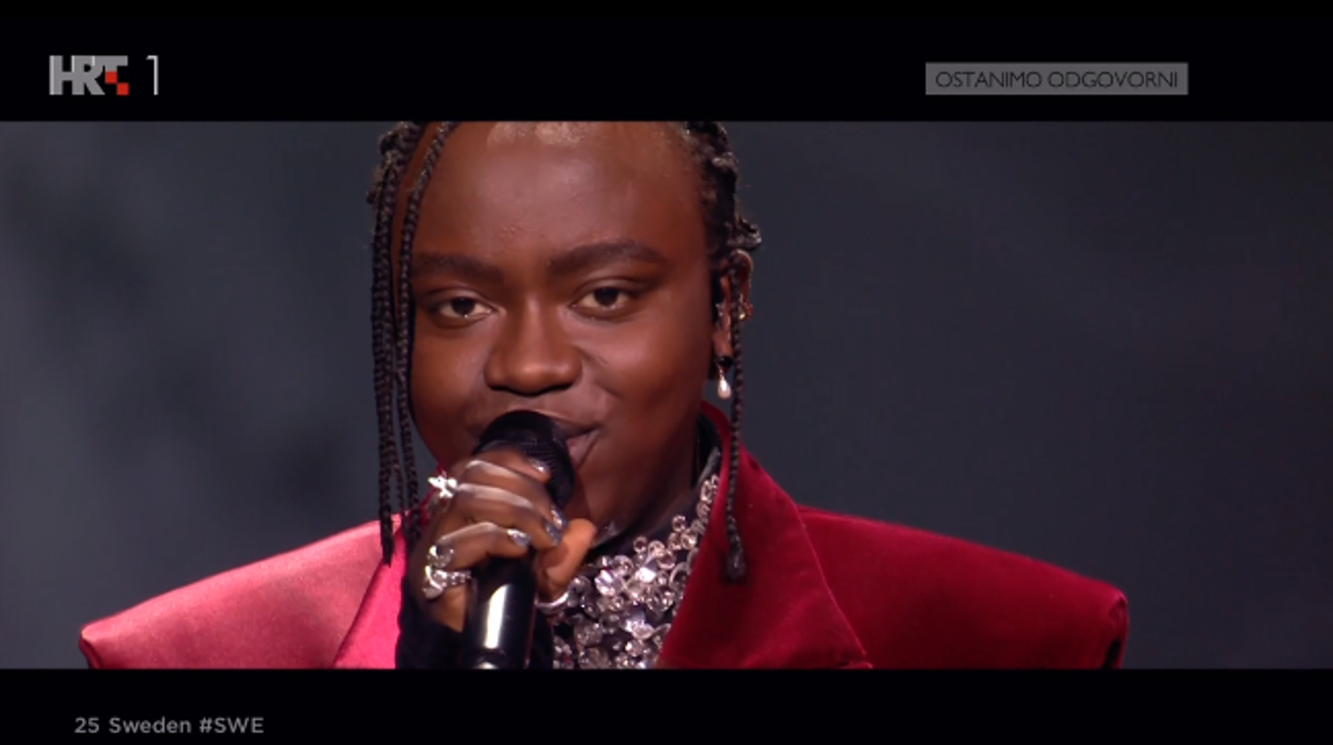 22:55 Predzadnji večeras nastupa Tusse s pjesmom "Voices". Tousin Michael Chiza rođen je 2002. godine u Demokratskoj Republici Kongo,a u Švedsku je stigao kao izbjeglica kad mu je bilo samo osam godina. Šveđani su ga upoznali prije tri godine, kada je došao do polufinala njihovog Supertalenta, a već iduće godine pobijedio je na Idolu.