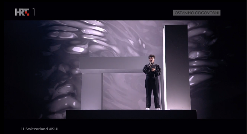 21:55  Iduća na scenu dolazi Švicarska i njihov predstavnik Gjon’s Tears s pjesmom "Tout l'univers" (eng. The whole universe). Dosad, Švicarska je zadnje mjesto na ovom natjecanju zauzela osam puta, a pobijedila samo dvaput - 1998. i 1956. godine. Nastupom Luca Hänni 2019. godine uspjeli su se plasirati na četvrto mjesto.