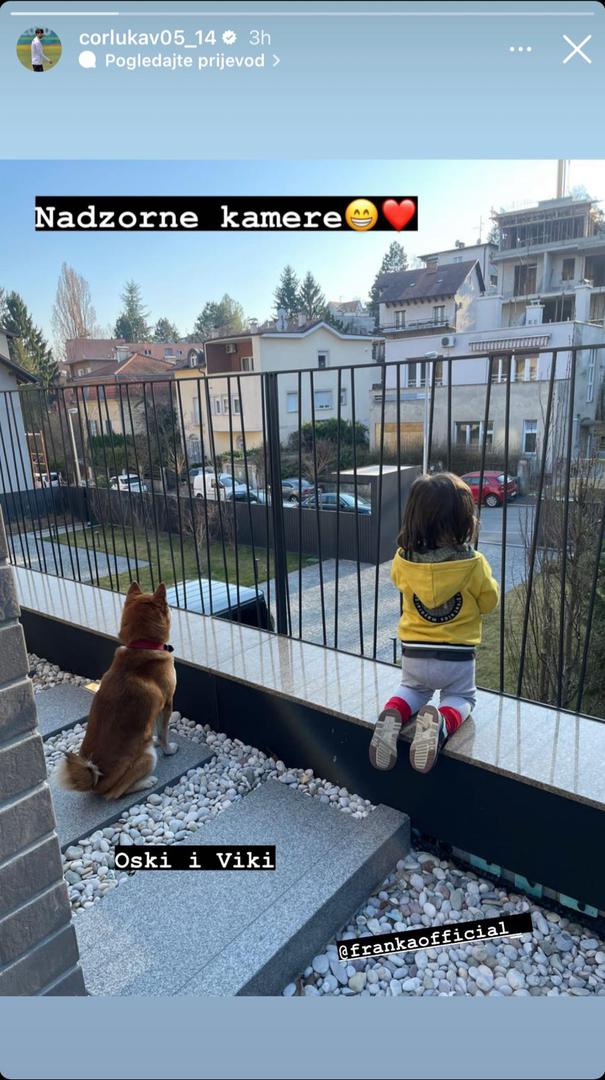 Na svom je Instagram storyju podijelio fotografiju sina i njihovog ljubimca Oskija koji su zajedno uživali na balkonu njihove kuće i promatrali što se događa u susjedstvu, a Vedran je uz fotografiju kratko napisao ''Nadzorne kamere''.