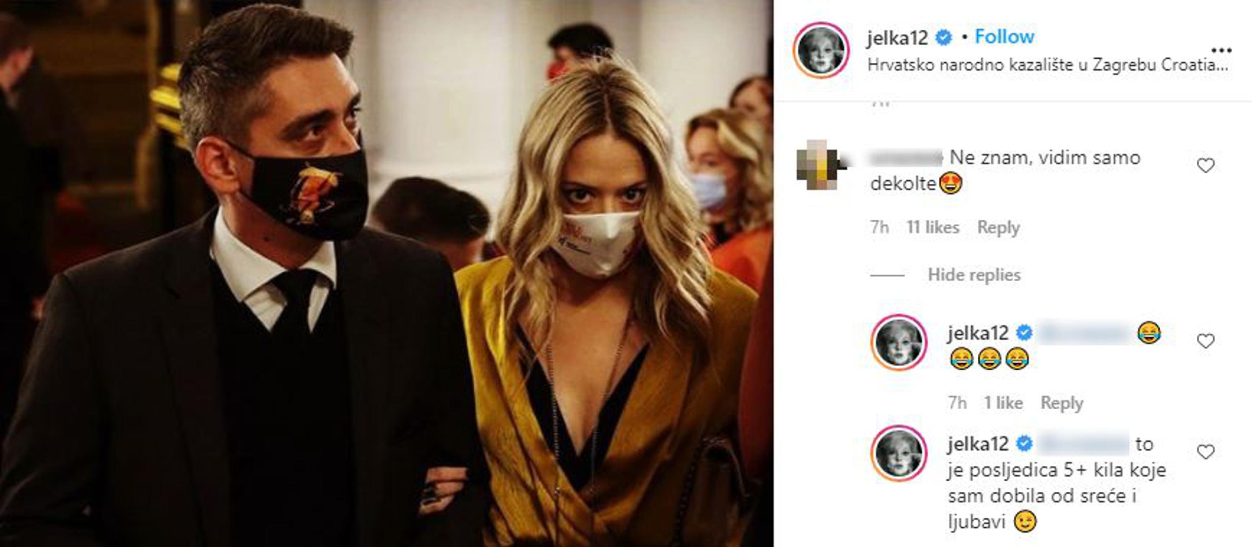 "Život je predivan, čak i sa maskom". U nizu komentara koji su se ispod toga zaredali pristigle su mnoge lijepe čestitke novopečenom paru, a jedna Jelenina pratiteljica joj je poručila kako se na fotografiji vidi samo njezin dekolte.