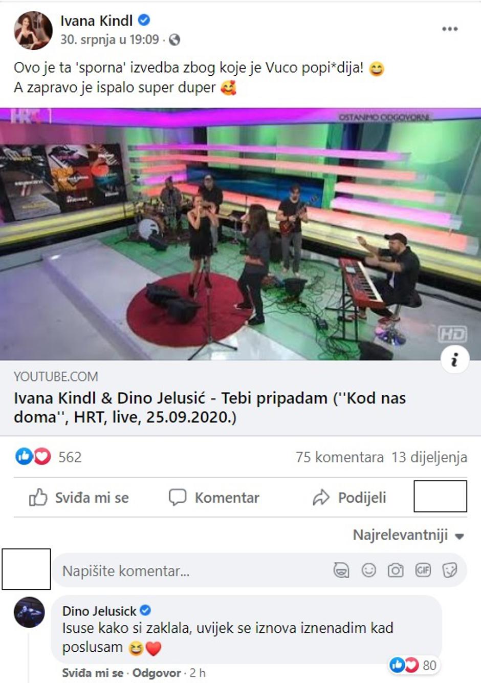 - Ovo je ta 'sporna' izvedba zbog koje je Vuco popi*dija! A zapravo je ispalo super duper - napisala je Kindl uz objavu.