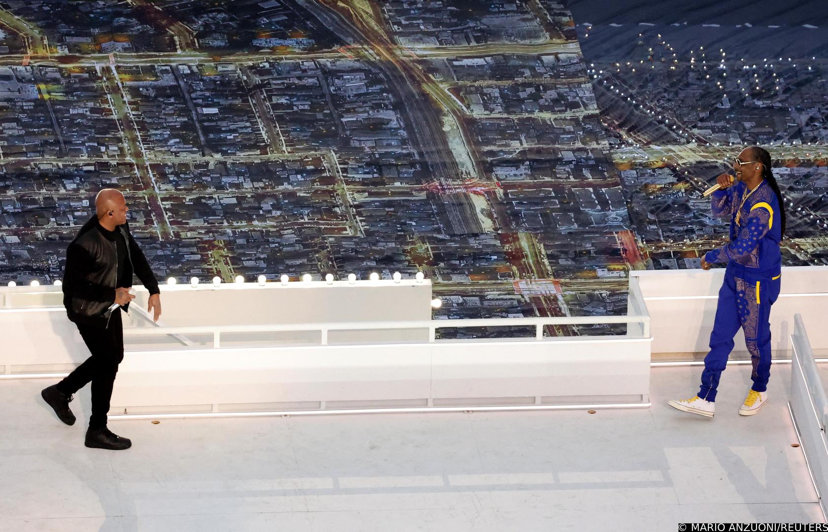 Pravi spektakl dogodio se za vrijeme poluvremena na utakmici momčadi Ramsa iz Los Angelesa i Bengalsa iz Cincinnatija. Naime, kao i svake godine, glazbeni show za vrijeme poluvremena Super Bowla razgalio je publiku, a ovaj put sudjelovali su ''originalni gangsteri'' Dr. Dre i Snoop Dogg.