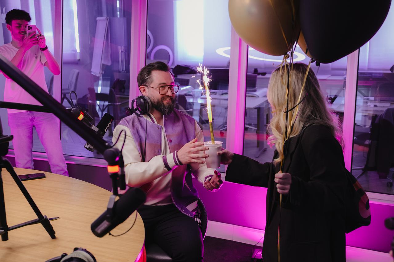 Voditelji Mihaela Dragičević i Dario Maradin upitali su ga zna li već sada što će odjenuti, a on je kroz šalu odgovorio: "Vidjet ćemo kako će mi se do tada promijeniti mjere. Ali bit će nešto cool, u mom stilu." U studiju su mu pripremili i posebno rođendansko iznenađenje. Dočekala ga je torta u obliku posnog sira, nakon što su čuli da ne preskače teretanu, ali i posebna čestitka koja ga je dirnula - njegova kći otpjevala mu je "Sretan rođendan, tata", što mu je oči napunilo suzama.