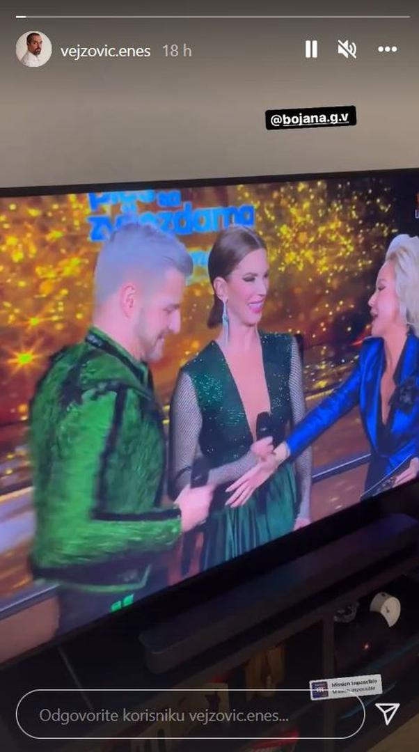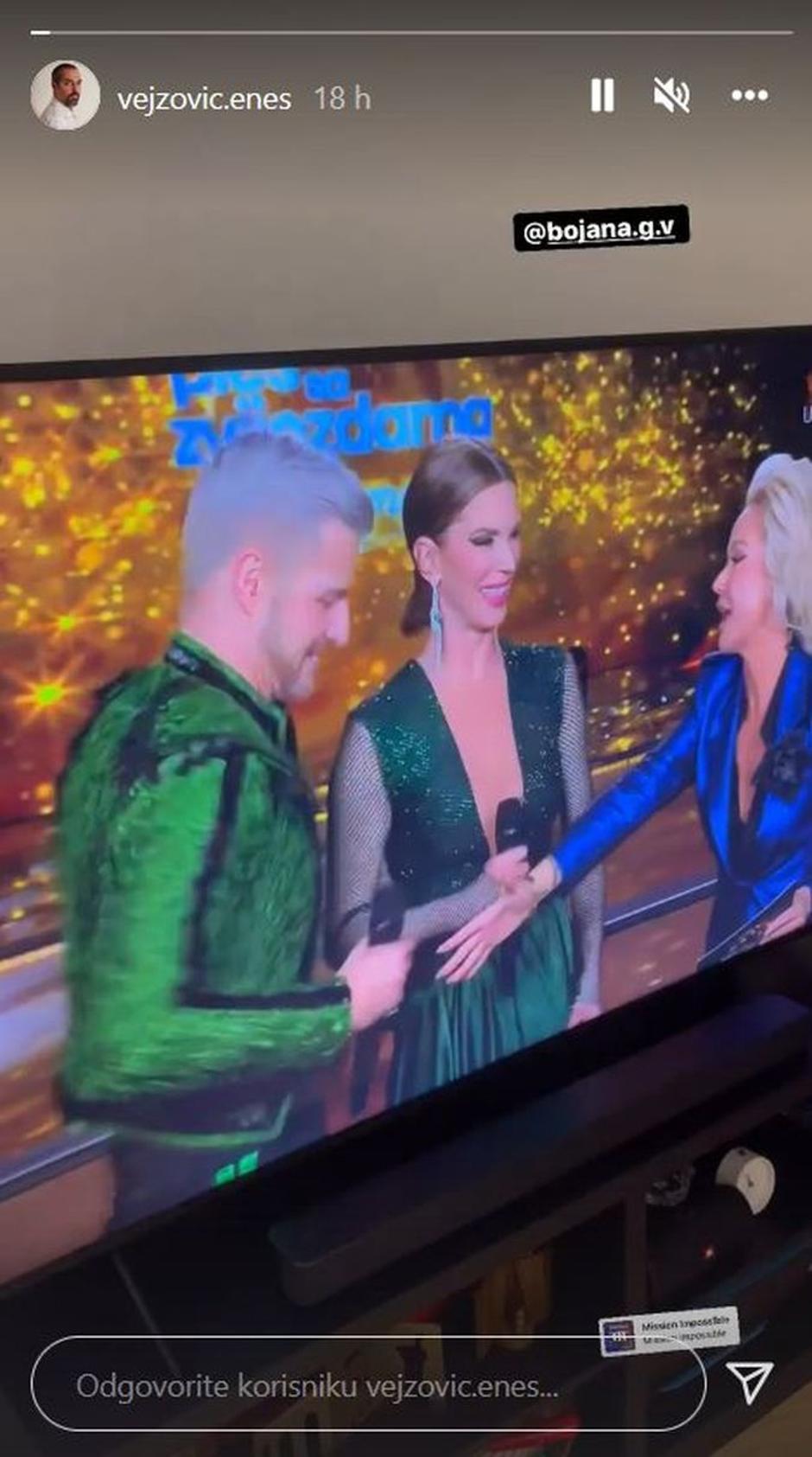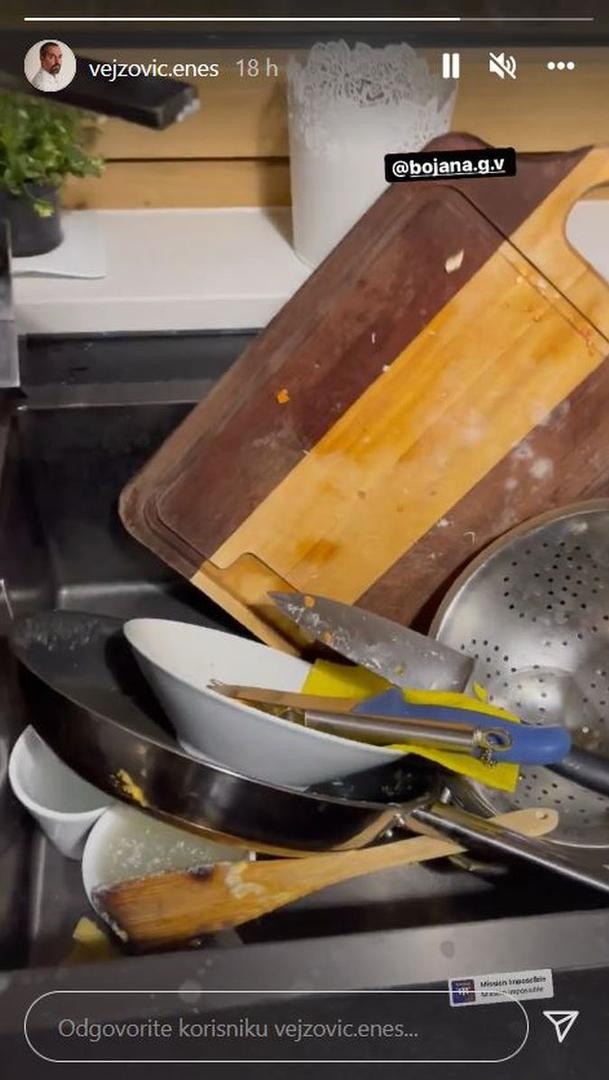 Enes je prvo objavio fotografiju televizora na kojem gleda svoju suprugu, a potom je mnoge nasmijao i fotografijom neopranog suđa u sudoperu.Njegova objava nasmijala je i samu Bojanu koja je istu objavila na svom Instagramu uz opis: 'Realnost zove'.