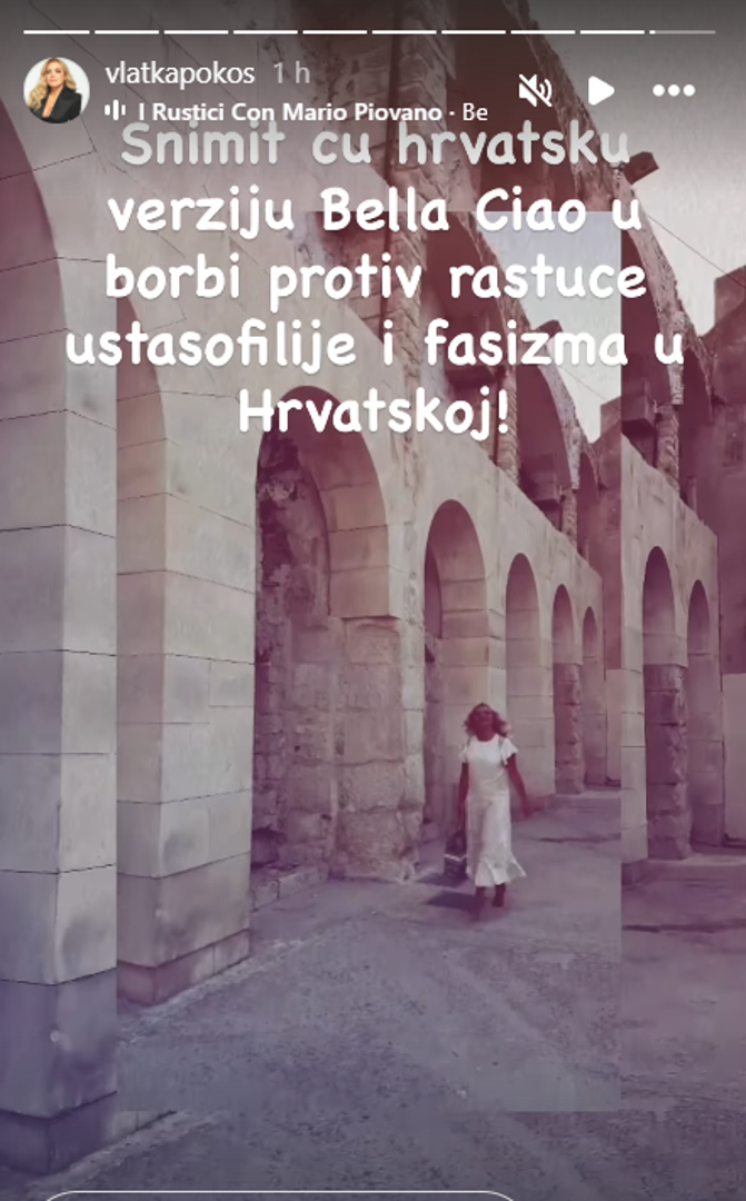Bivša televizijska voditeljica i nekadašnja pjevačica Vlatka Pokos ponovno se oglasila na društvenoj mreži Instagram, a ovaj put je najavila snimanje hrvatske verzije antifašističke pjesme Bella Ciao. Otkrila je da time želi doprinijeti borbi protiv "rastuće ustašofilije i fašizma u Hrvatskoj". Ovo je samo jedna u nizu zapaljivih Vlatkinih objava u posljednje vrijeme. Nedavno se, primjerice, osvrnula na koncert Marka Perkovića Thompsona na zagrebačkom Hipodromu, gdje se 5. srpnja skupilo više od 500.000 ljudi. Nju ta brojka, sudeći prema komentaru na mrežama, nije impresionirala, iako je cijeli koncert protekao u mirnom tonu bez ijednog incidenta.