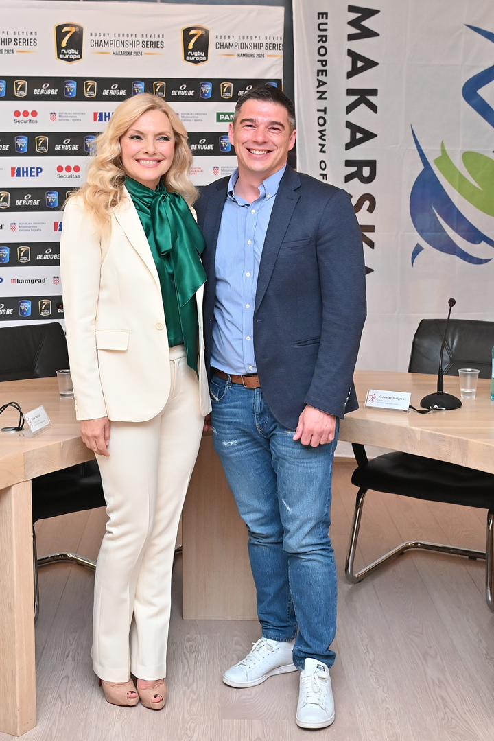 Zaljubljeni par spremno je pozirao nakon konferencije za medije na kojoj je najavljeno održavanje Europskog prvenstva u ragbiju koje će se održati od 7. do 9. lipnja u Makarskoj.