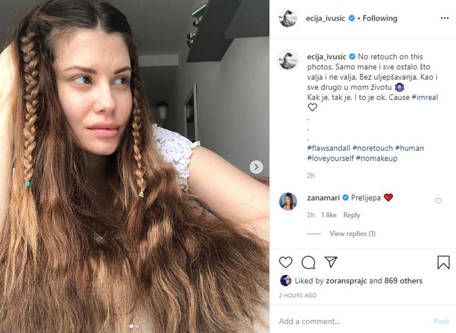 "Nema retuširanja na ovim fotografijama. Samo mane i sve ostalo što valja i ne valja. Bez uljepšavanja. Kao i sve drugo u mom životu. Kak je, tak je. I to je ok. jer ja sam stvarna", napisala je Ecija uz nekoliko selfieja.