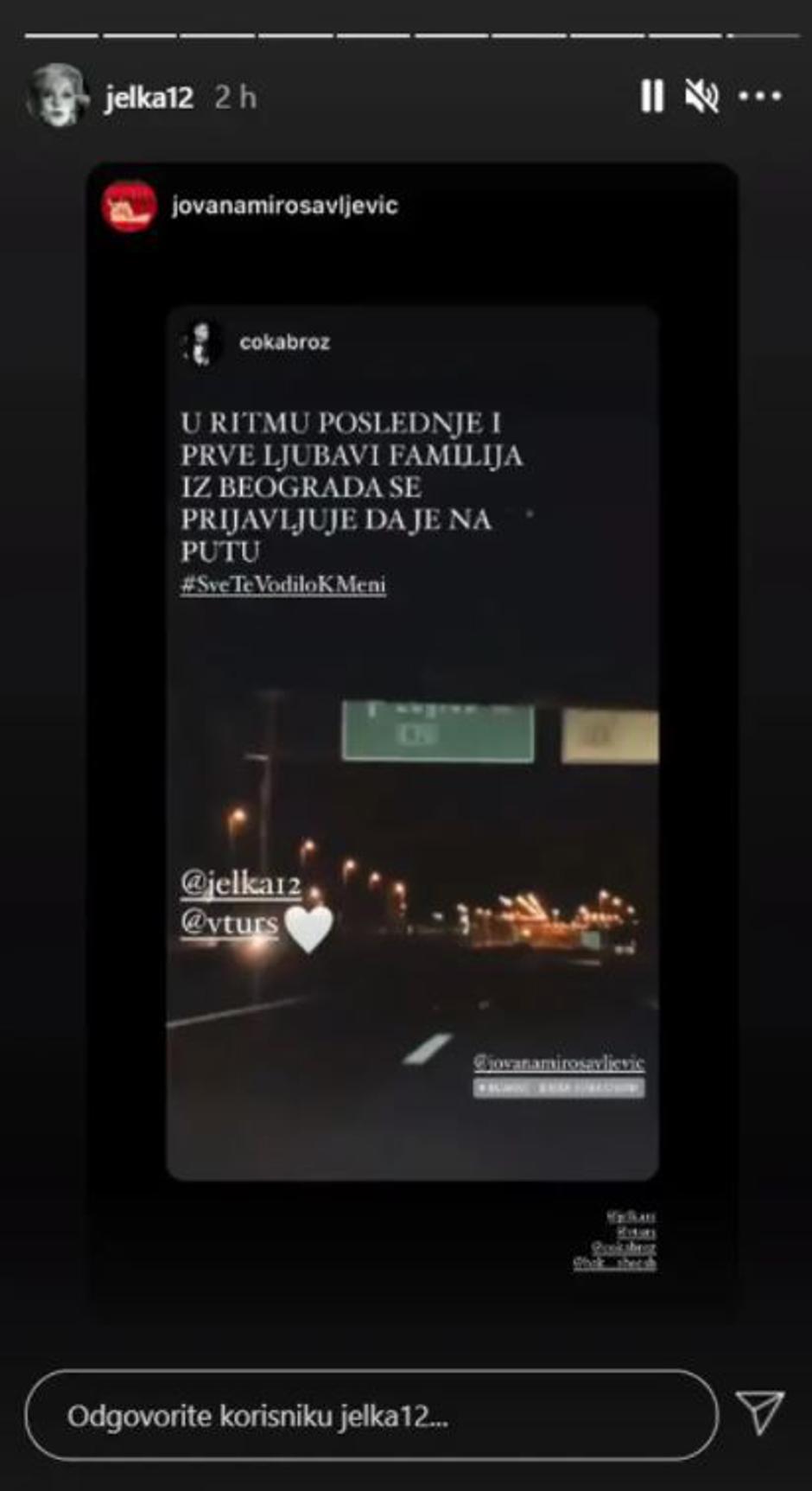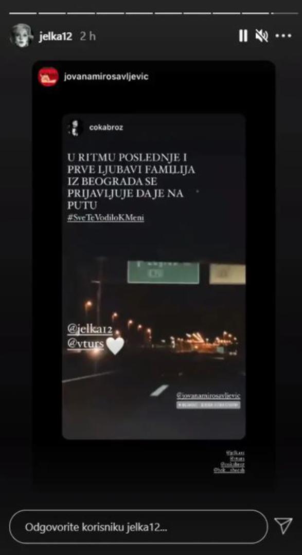 - U ritmu posljednje i prve ljubavi familija iz Beograda se prijavljuje da je na putu -  stoji u objavi koju je glumica i spisateljica objavila na svom profilu.